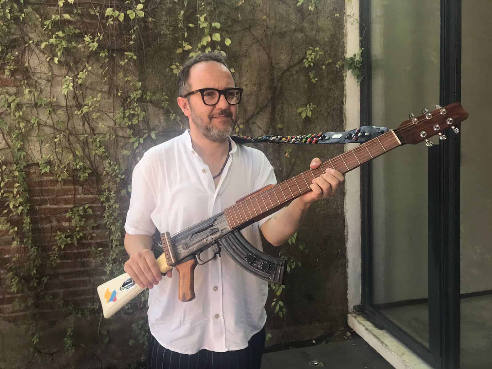Sin embargo, fue durante la presentación de lo que será este evento cultural y musical que César López, cantautor y activista colombiano, portó una guitarra tallada en forma de un arma de fuego.