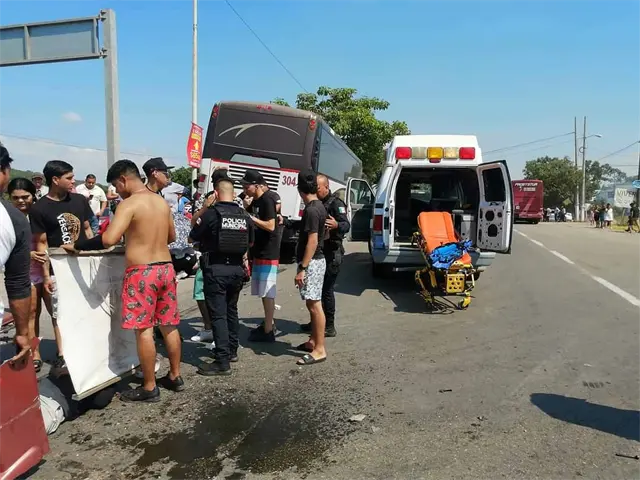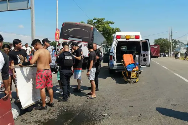 Esta tarde de domingo, un autobús de pasajeros arrolló a dos personas que viajaban a bordo de una motocicleta en la salida sur de Mazatlán sobre la carretera México 15.