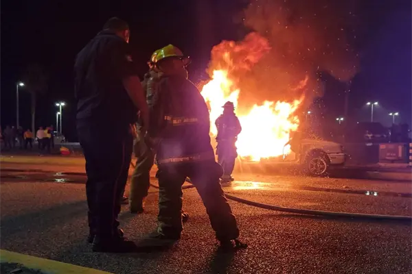 Posteriormente, el vehículo comenzó a incendiarse y fue sofocado por los elementos de Bomberos Veteranos, quienes también acudieron a brindar auxilio, junto a los cuerpos de rescate del Aeropuerto del Servició Salvamento y Extinción de Incendios (SSEI).