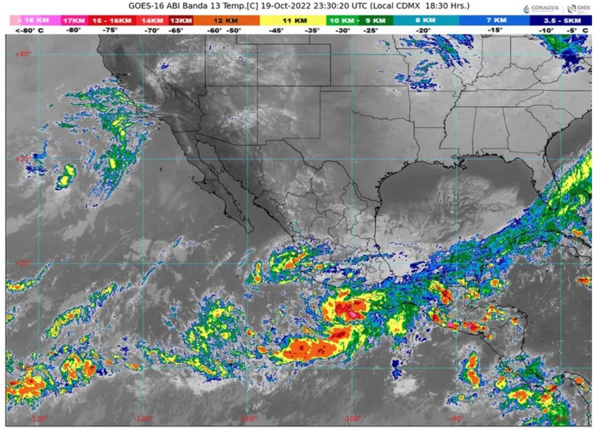 Este viernes 21 de octubre «Roslyn» podría intensificarse a huracán, informó el Servicio Meteorológico Nacional de la Conagua.