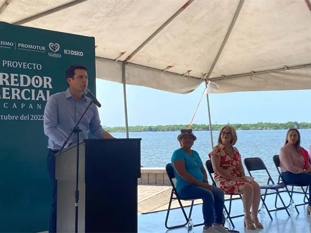 Este miércoles, la Secretaría de Economía en conjunto con la Secretaría de Turismo y Promotur Sinaloa dieron inicio al corredor comercial de Teacapán, en el que, con el programa Coloreando Sinaloa, se pintarán 15 mil 100 metros cuadrados, entre estos encontrándose el malecón.