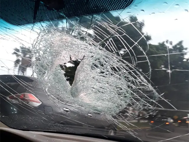 Piedra rompe parabrisas de auto en Culiacán; el conductor desconoce de donde se originó la agresión