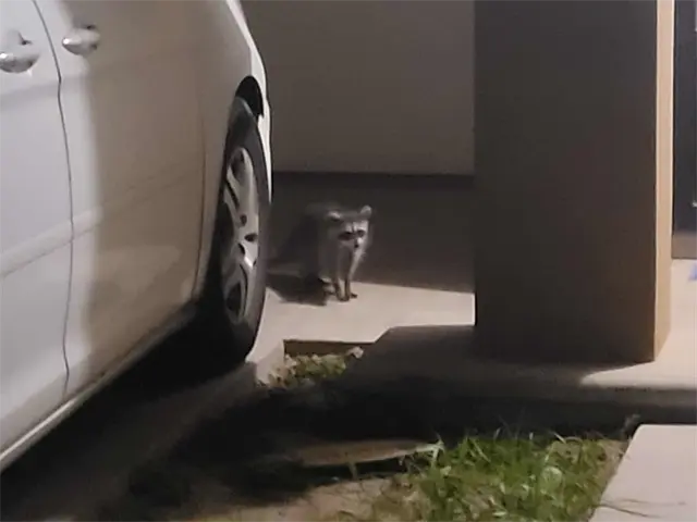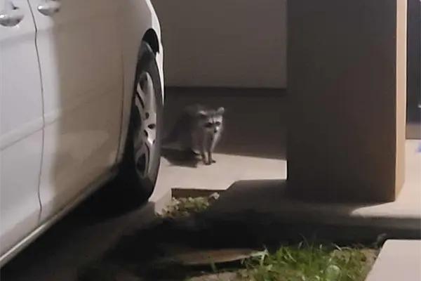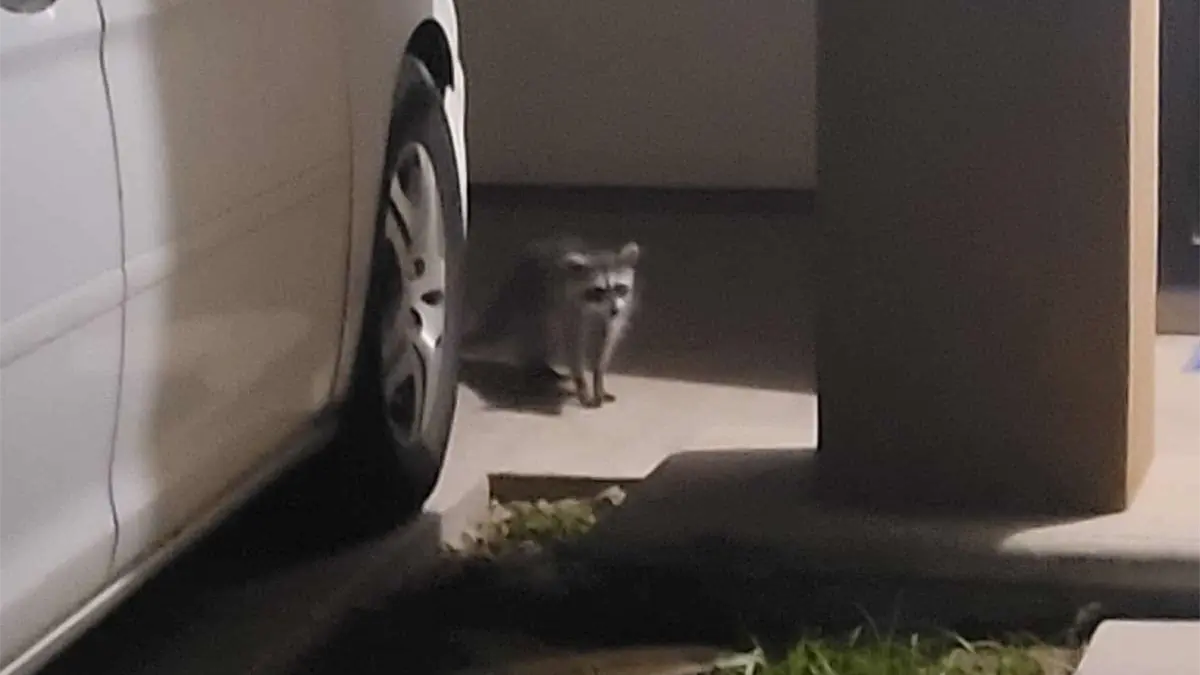 Un vecino inesperado, un mapache, causa molestias y terror a Vecinos del Fraccionamiento Viñedos.