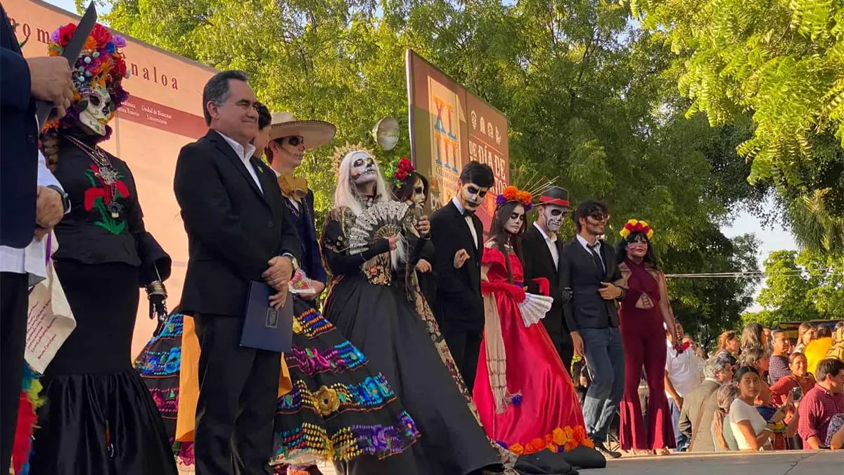 En un ambiente lleno de colores y cempasúchil, la Universidad Autónoma de Sinaloa (UAS) realizó la tradicional Celebración Universitaria de Día de Muertos con la muestra de altares y por primera vez el desfile de catrinas y catrines.