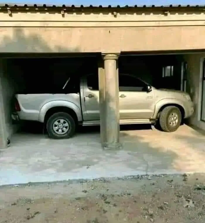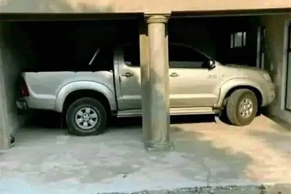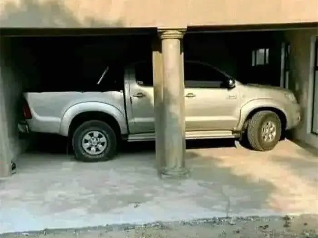 En una fotografía que circula por Internet se aprecia al vehículo visiblemente abollado, prácticamente enjaulado de una forma inusual. La fotografía es acompañada de una frase del mismo dueño, admitiendo que la noche anterior había llegado borracho a su vivienda y no sabía cómo había podido estacionar su camioneta de esa forma.