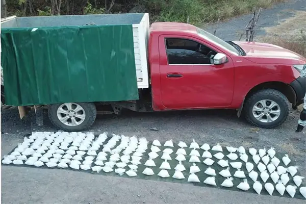 El personal militar hizo un cerco de seguridad en el perímetro para posteriormente revisar el vehículo, en el que se encontraron los 115 kilogramos de la posible droga sintética.