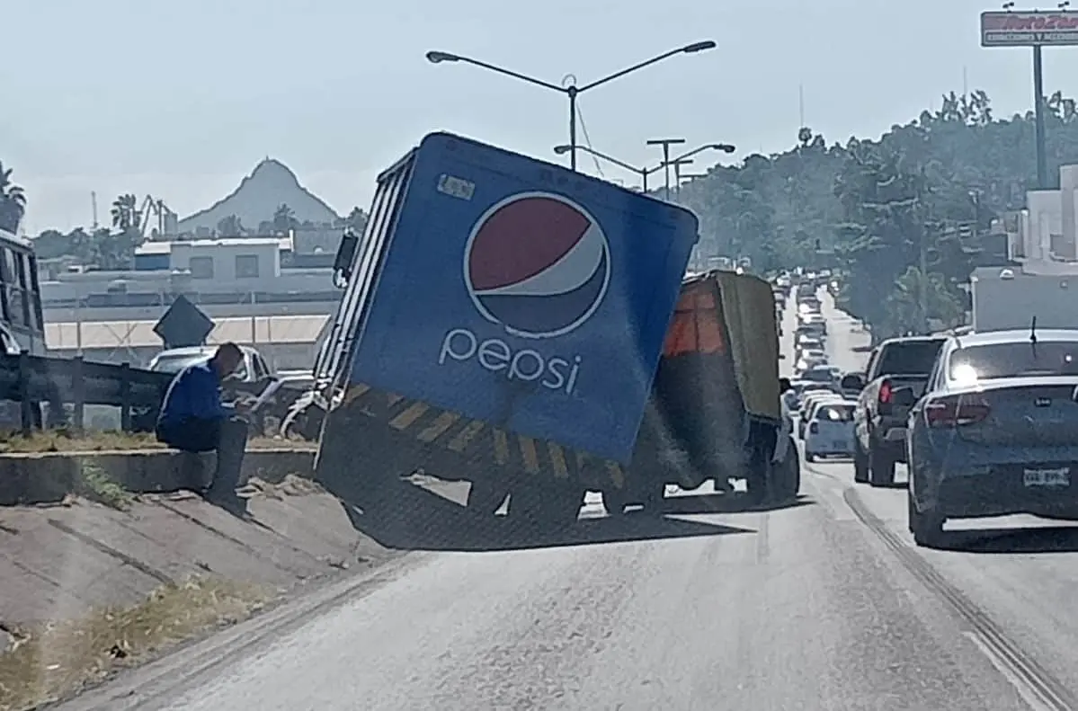 Choca camión de compañía refresquera y desquicia el tráfico en Mazatlán