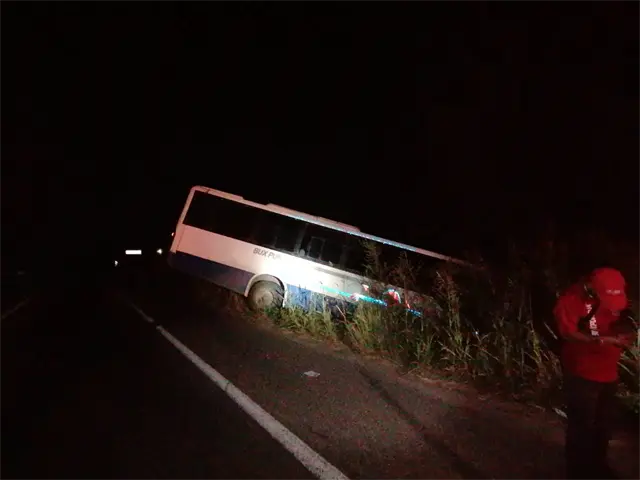 Seis personas lesionadas entre ellas una mujer embarazada, fue el saldo que dejó un accidente de camión de transporte de personal de una empresa, mismo que estuvo a punto de caer de un puente, tras salirse de la carpeta asfáltica luego de embestir a un caballo que se atravesó en la carretera México 15.