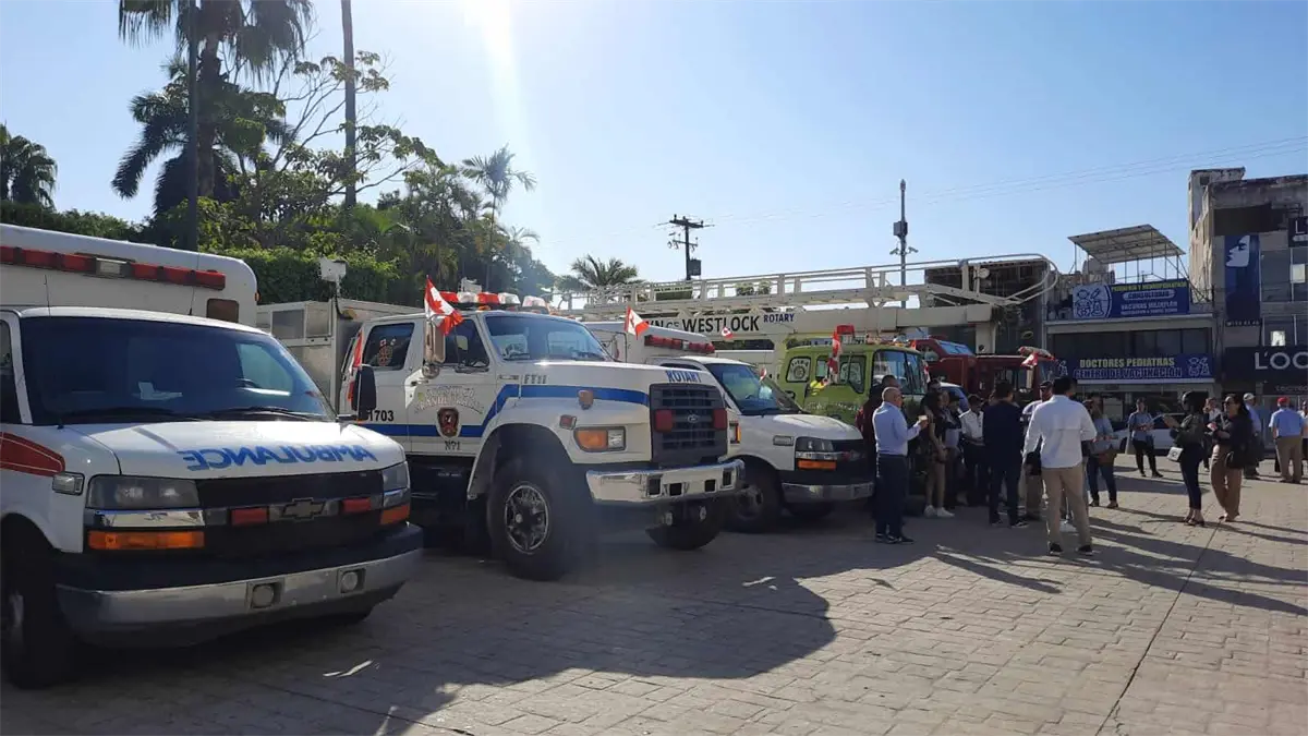 Con la finalidad de sumar esfuerzos con el Ayuntamiento de Mazatlán y mejorar las condiciones de equipamiento, miembros de Club Rotario Canadá y Mazatlán, hicieron entrega de la donación de 11 unidades de rescate, entre ellos camiones de bomberos, ambulancias, autobús escolar y para personas con discapacidad.