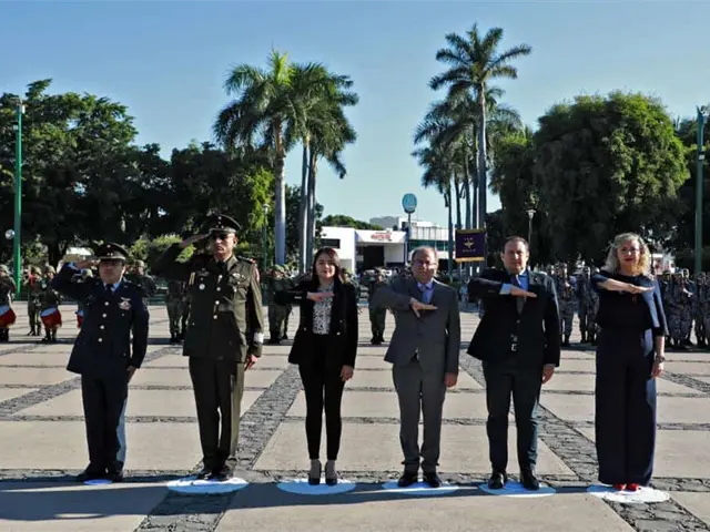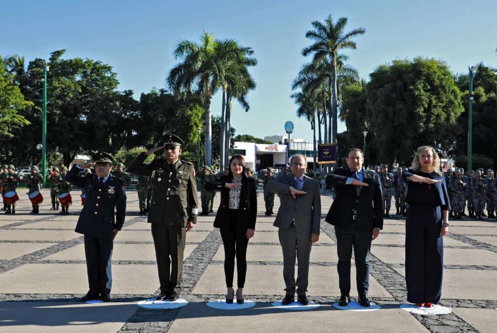 En representación del gobernador Rubén Rocha Moya, el director general de COBAES Santiago Inzunza Cázares representó este acto cívico acompañado de la diputada María Guadalupe Cázares Gallegos, el magistrado Jesús Iván Chávez Rangel, la secretaria de Desarrollo Económico del Ayuntamiento de Culiacán Janet Faviola Tostado Noriega, el comandante del 94/o Batallón de Infantería Alfredo González Cuevas y el jefe de la Sección Primera de la Base Aérea Militar Luis Alberto Paz Ruiz.