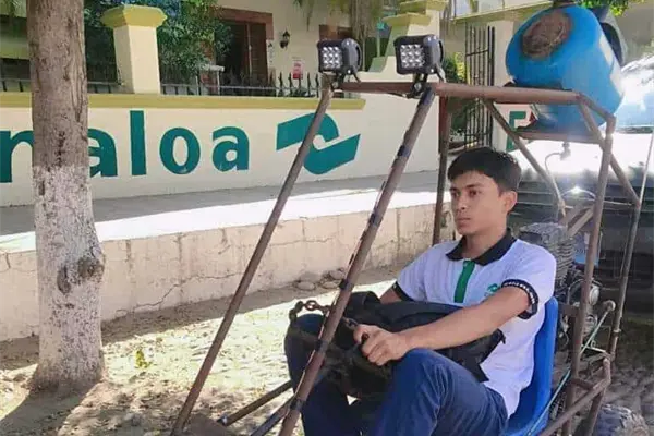 Rosvel Emir Cruz Herrera es un estudiante de informática del Colegio Nacional de Educación Profesional Técnica (Conalep) El Fuerte, a sus 16 años y con la ayuda de su padre, construyó un vehículo en el que se transporta todos los días a la escuela desde la comunidad de Los Ayones.