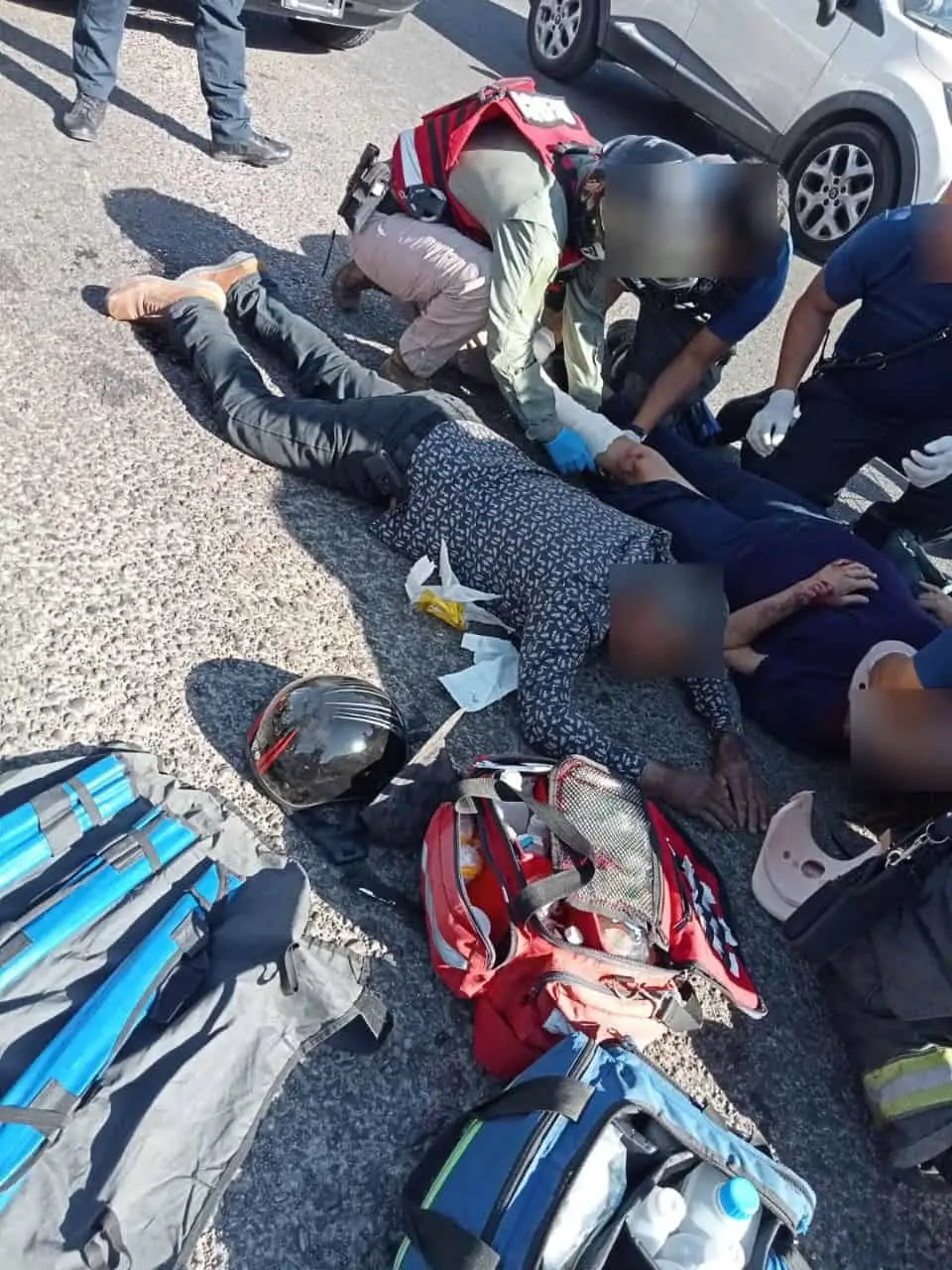 Una pareja de adultos mayores, hombre y mujer, fueron trasladados a un hospital al resultar con lesiones y fracturas tras ser arrollados por un autobús de turismo, cuando viajaban en una moto por calles de la colonia Infonavit Solidaridad, al nor-poniente de la ciudad de Culiacán.