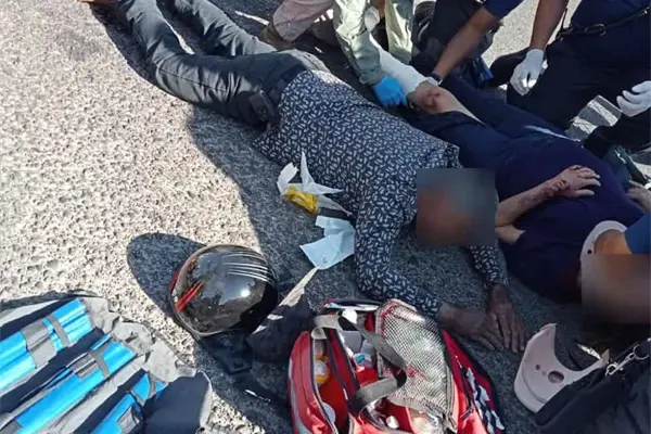 Tras el accidente, ambos adultos quedaron tendidos en el pavimento y el responsable del atropellamiento aceleró para escapar del lugar.