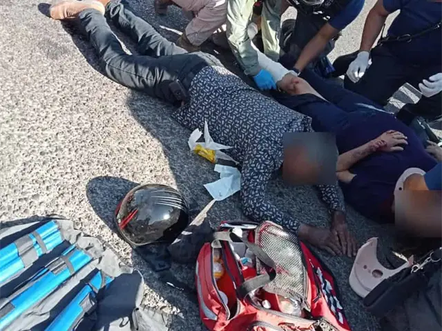 Uno de los integrantes de Paramédicos Voluntarios GERUM arribó al sitio e inició a brindar las atenciones medicas y posteriormente también llegaron en apoyo paramédicos de Cruz Roja Culiacán, quienes trasladaron a los lesionados a un hospital.