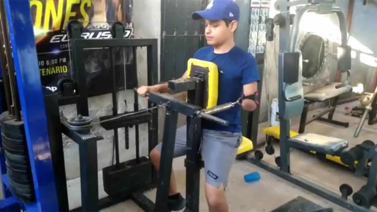 Para Adoniram Abimelec Castro López, un joven sin un brazo y originario del Ejido 9 de Diciembre, hacer ejercicio en un gimnasio convencional se vuelve todo un reto, pues tiene que buscar la manera de adaptarse a los aparatos que ahí existen, ya que ninguno en el municipio cuenta con equipamiento especializado.