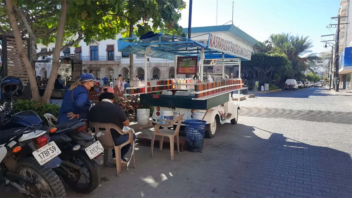 Sergio Tiznado Hernández, vendedor de raspados en el primer cuadro de la ciudad, frente a Catedral, comentó que a partir de esta semana las ventas disminuyeron considerablemente, ya que por las temperatura y vientos frescos que se registran en Mazatlán las personas locales no consumen este postre.