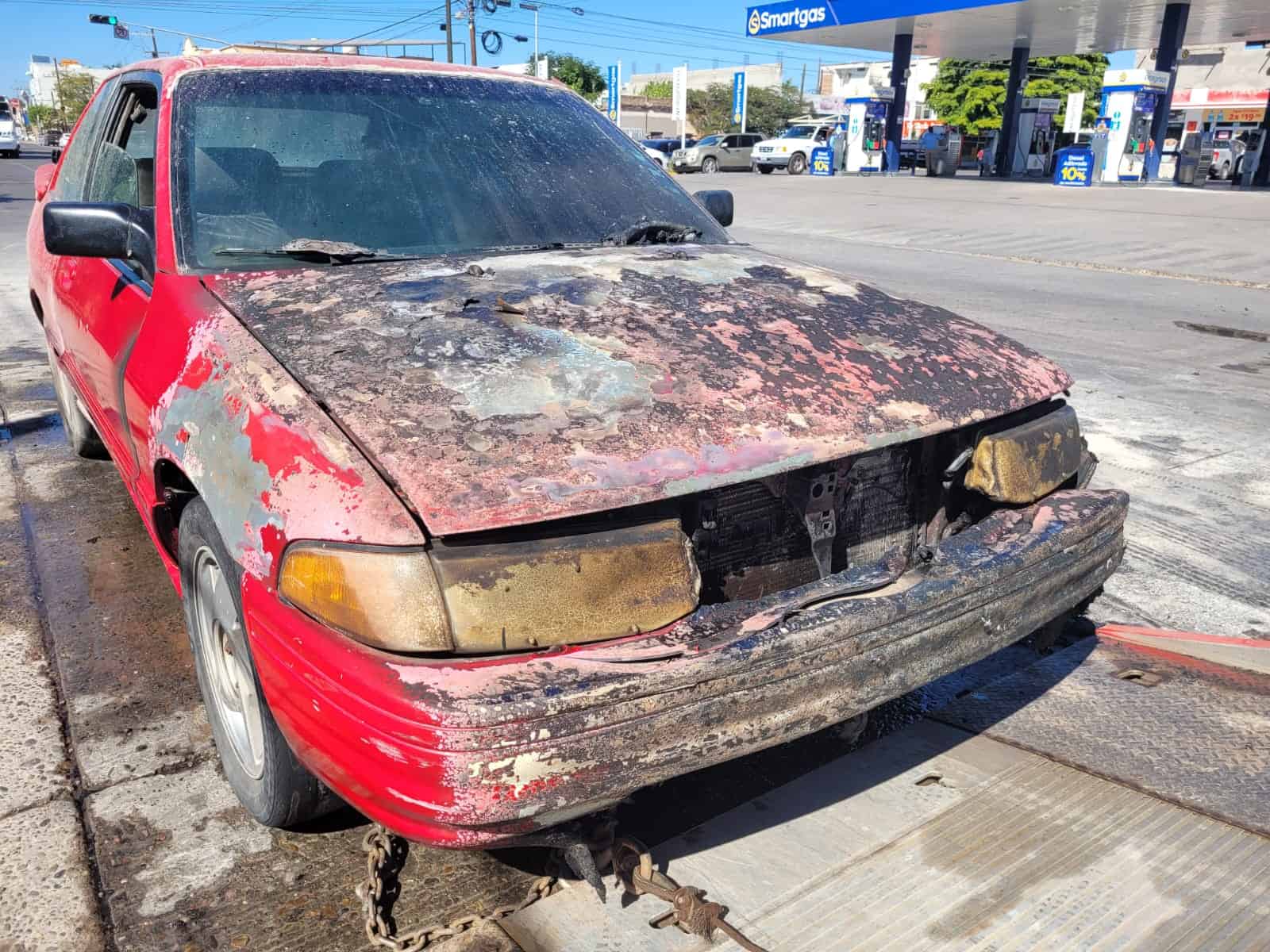 Un automóvil Ford Escord Color rojo, terminó en llamas esta mañana de sábado.