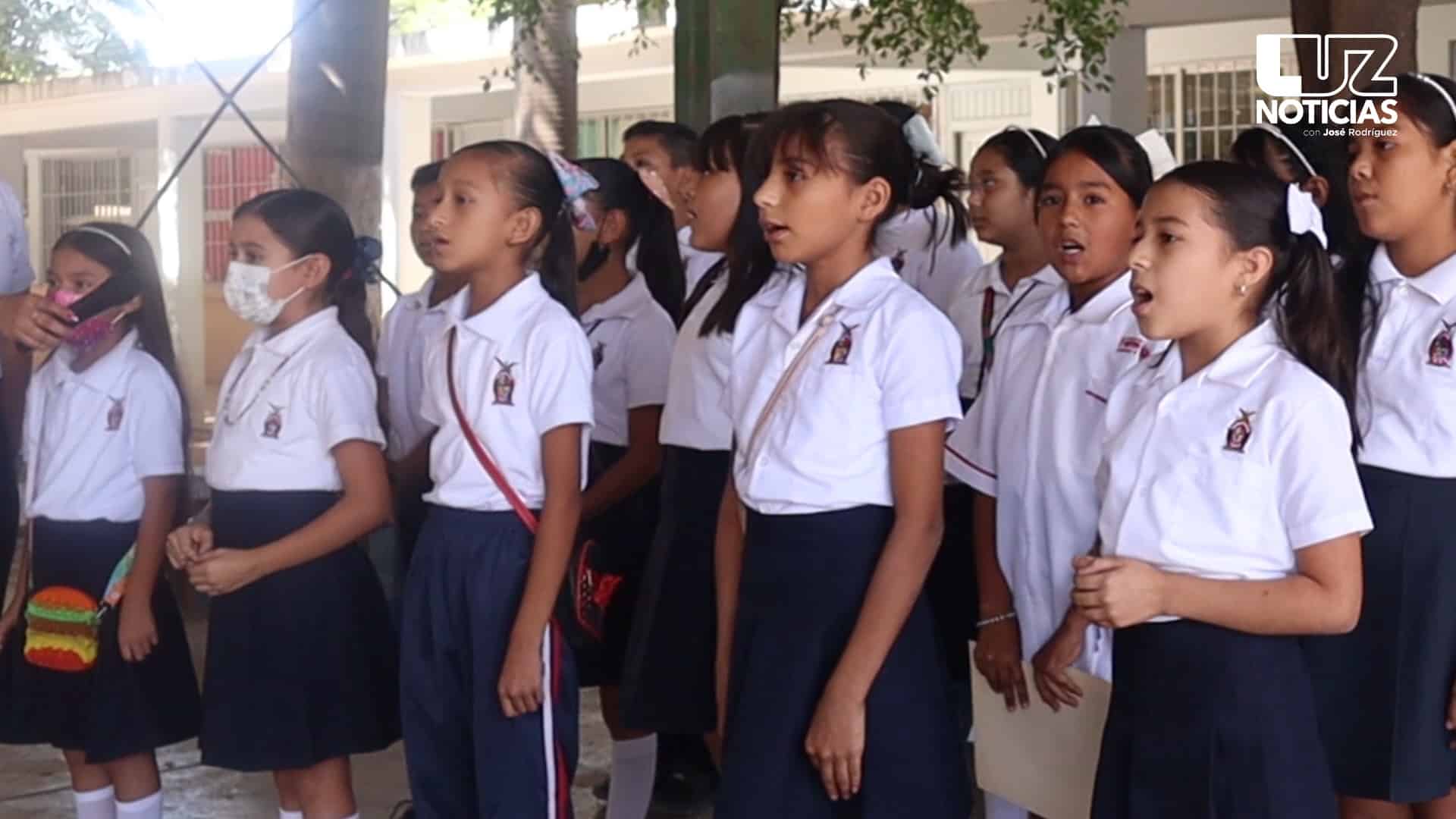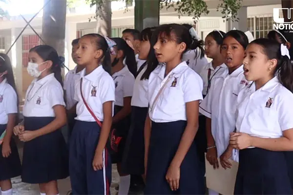 Alumnos de quinto año de la escuela primaria Justo Sierra, turno vespertino, presentaron una versión del himno nacional mexicano en español y lengua mayo-yoreme (Itom Yoreme buja Buiikim).