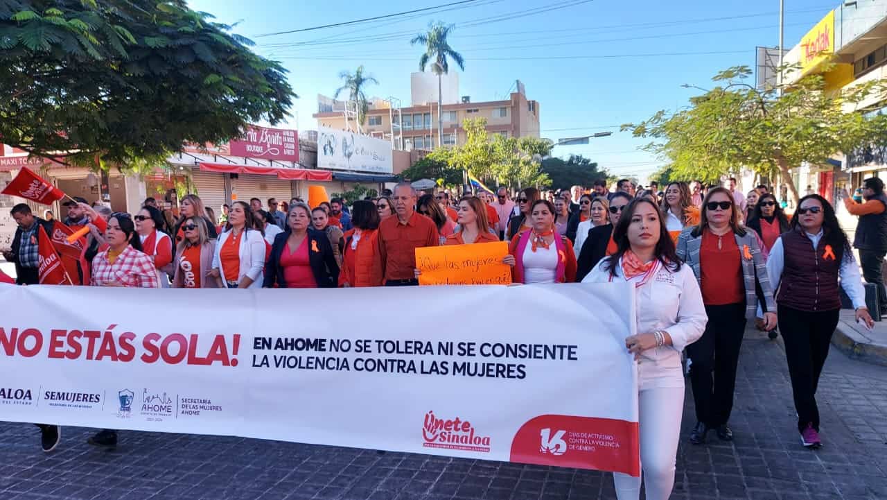 Este miércoles las calles de Los Mochis se pintaron de naranja durante la Marcha conmemorativa al Día Internacional de la No Violencia Contra la Mujer, la cual fue encabezada por el alcalde de Ahome Gerardo Octavio Vargas Landeros y funcionarios municipales.