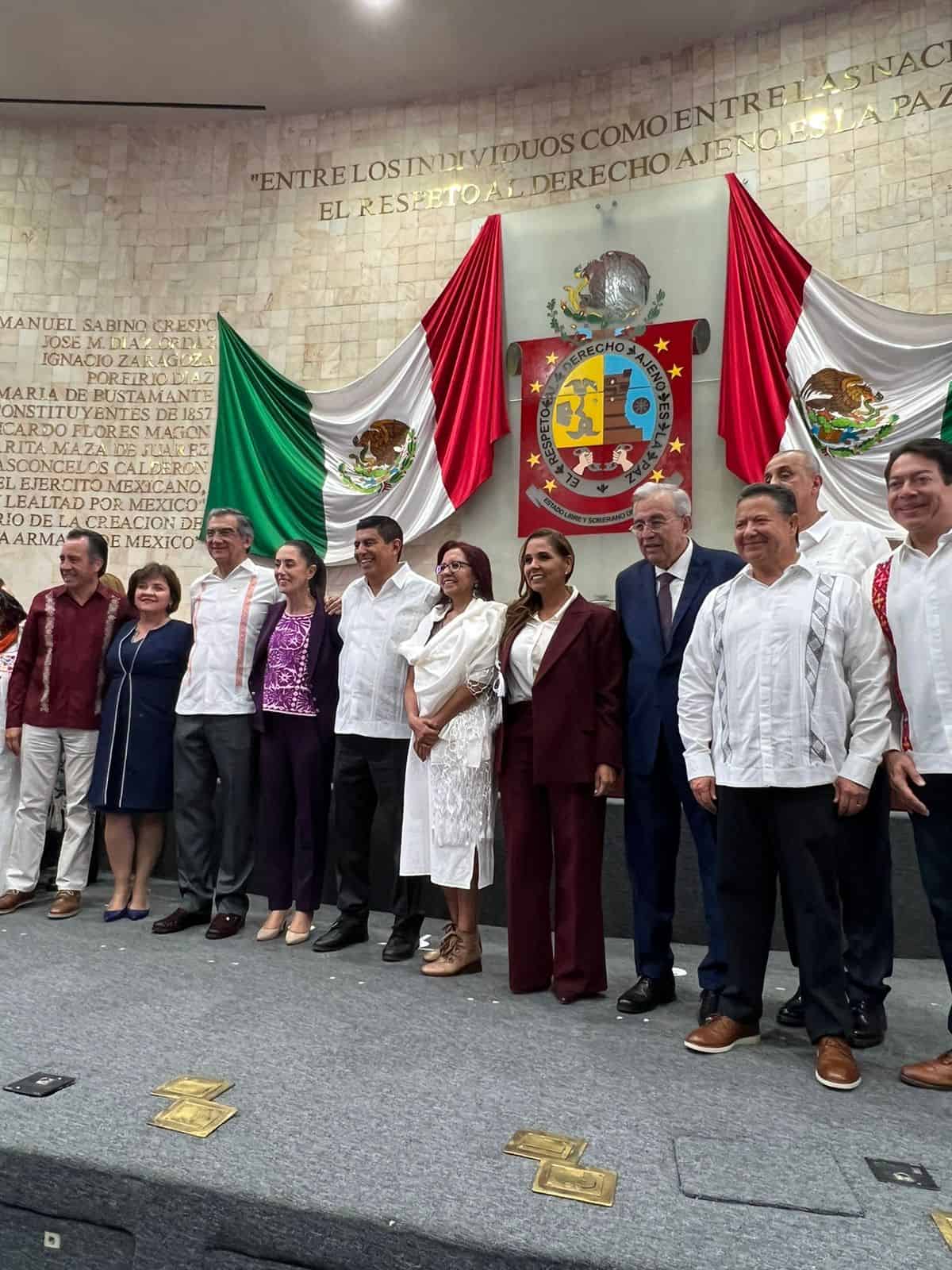 El gobernador Rocha asistió acompañado por la senadora sinaloense Imelda Castro Castro, y también compartió lugar en el Congreso del Estado de Oaxaca con la jefa de Gobierno de la Ciudad de México, Claudia Sheinbaum Pardo.
