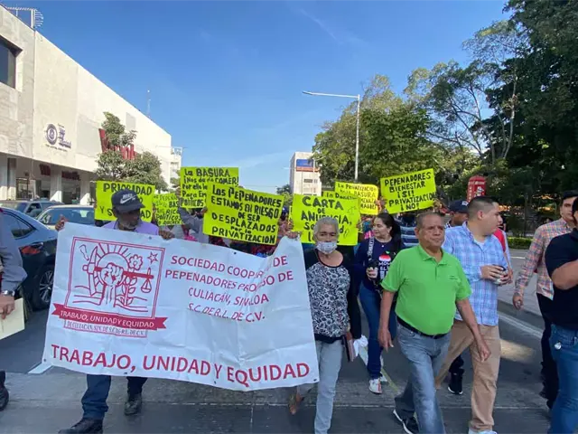 Trabajadores de la Sociedad Cooperativa de Pepenadores Progreso de Culiacán, se manifestaron en busca de que no se privatice el relleno sanitario y que se les garantice una seguridad laboral.