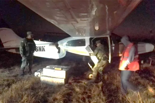 Además, el general detalló que la avioneta portaba placas N108NK, y en el sitio fueron detenidas dos personas, de las cuales hasta el momento no hay información sobre su identidad.