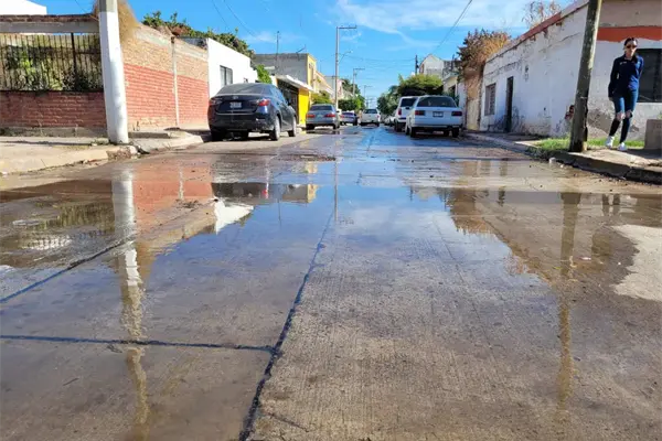Desde hace meses brota el agua de la calle en el callejón Galeana, entre Niños Héroes y Constitución; vecinos de la zona denuncian que se ha acercado personal de Japama y que su respuesta fue que no tienen la maquinaria necesaria para realizar reparaciones de ese estilo.