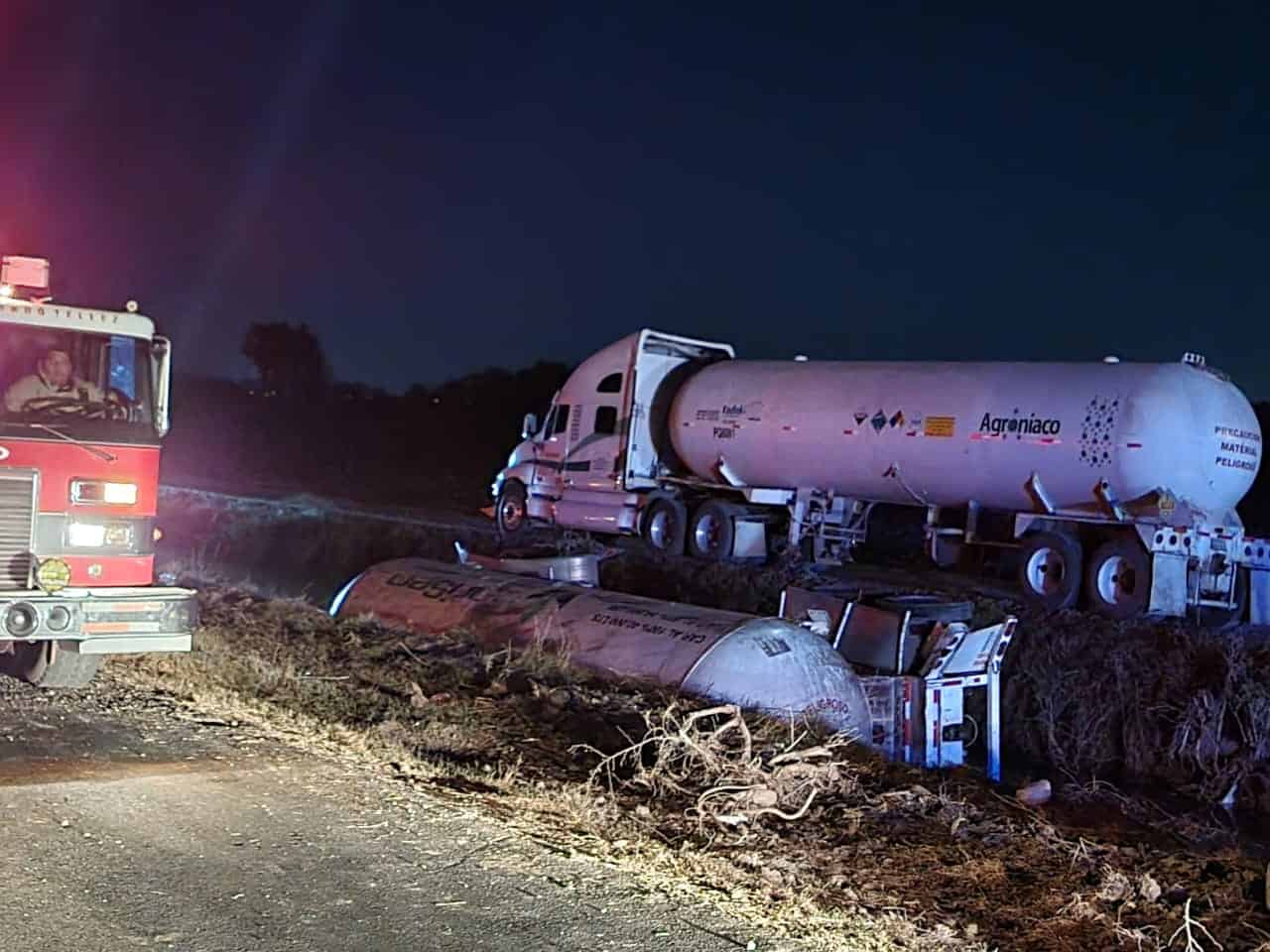 Vuelca pipa de 22 mil litros de gas amoniaco en Ahome