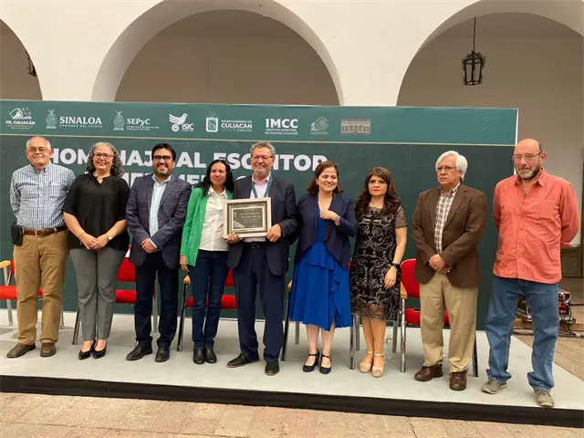 Por su amplia trayectoria, el Ayuntamiento de Culiacán le otorgó un reconocimiento y medalla al escritor sinaloense Élmer Mendoza.