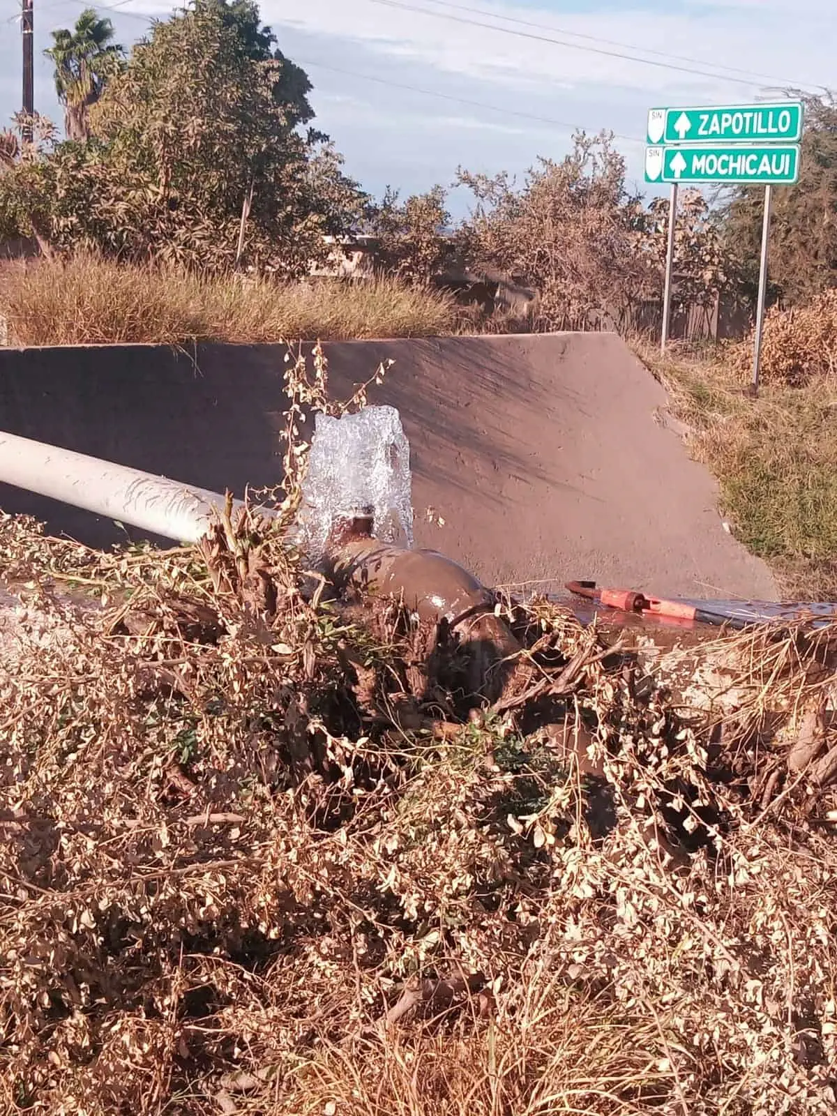 Personas desconocidas vandalizaron otra válvula expulsora de aire de 2 pulgadas, la Junta de Agua Potable y Alcantarillado de Ahome (JAPAMA), ahora fue en la línea de conducción de agua potable del ejido Gabriel Leyva Solano.