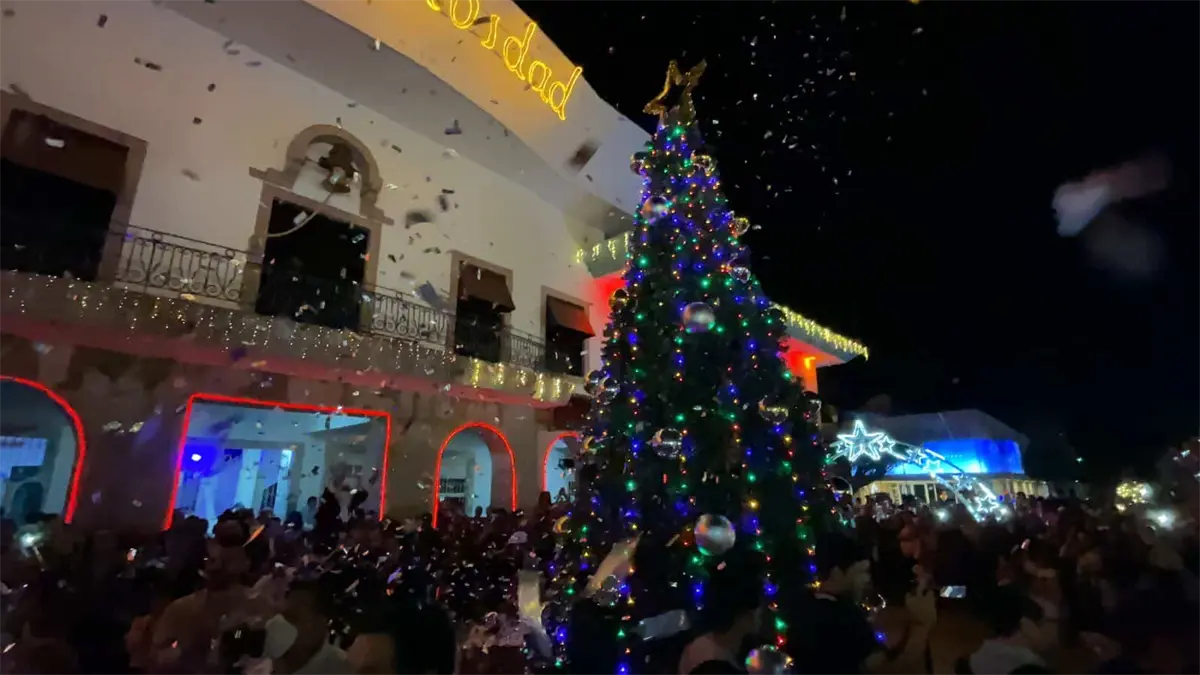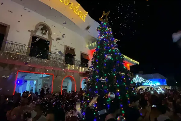 Llega la magia de la Navidad a Mazatlán: encienden iluminación y enorme árbol en la Plazuela República