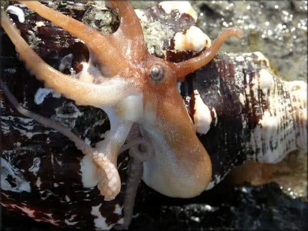 El Pulpo Pigmeo, es un animal diminuto, cuya talla máxima es de 15 centímetros y como no tiene esqueleto puede entrar en cualquier lugar.