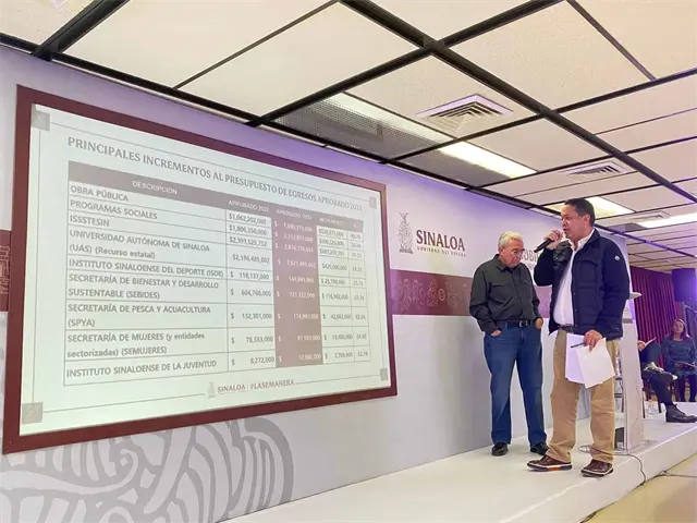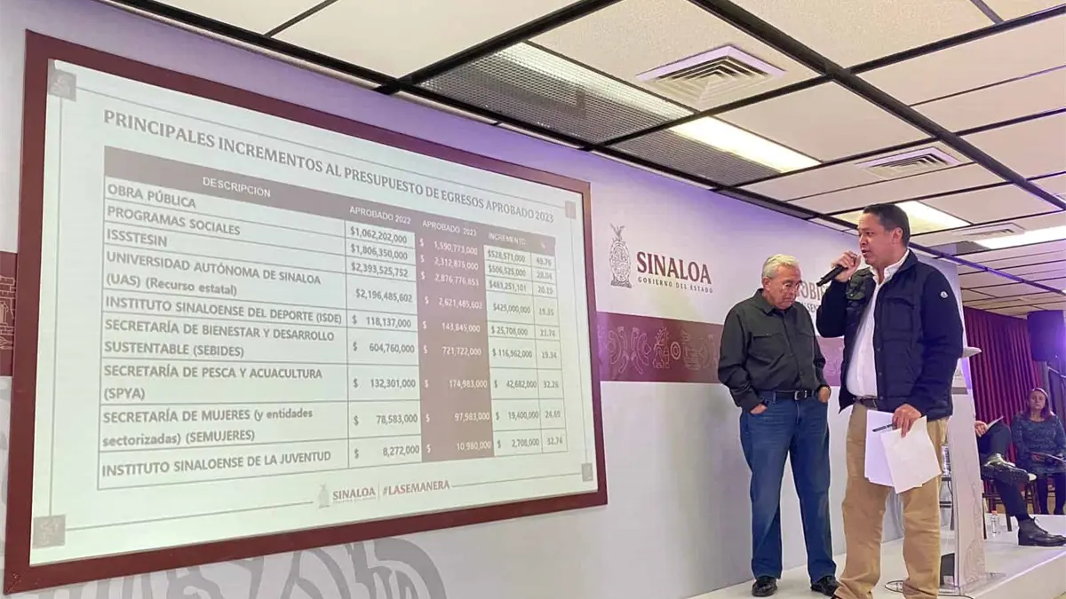 De igual forma, señaló incrementos en programas sociales con un 28%, el Instituto Sinaloense del Deporte con 21%, la Secretaría de Bienestar y Desarrollo Sustentable con el 19% y la Secretaría de las Mujeres con el 24% más de presupuesto que en el 2022.