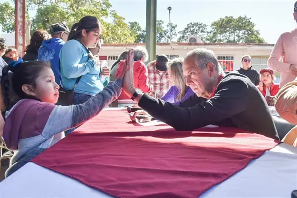 «Me da mucho gusto venir, y no venir solo, sino con todos los funcionarios que traen sus servicios. Lo que no podamos solucionar aquí, nos lo llevamos y lo resolvemos para su beneficio, para eso estamos, para venir a cumplir el compromiso de atenderlos de manera personal y brindarles servicios con calidad», expresó.