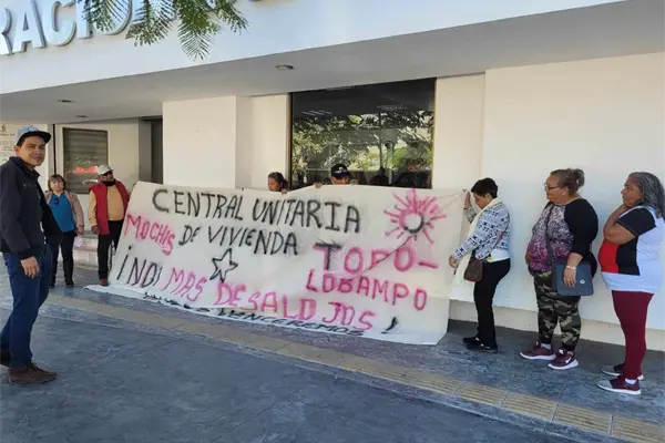 Miembros de la agrupación civil Central Unitaria de Vivienda en Ahome se manifestaron este viernes en la Vicefíscalía General de Sinaloa Zona Norte, para buscar una solución a un problema de desalojos que sufrieron por parte de la Policía Municipal y elementos de la Vicefiscalía en lotes ubicados en el sector «Conchos» de Topolobampo.