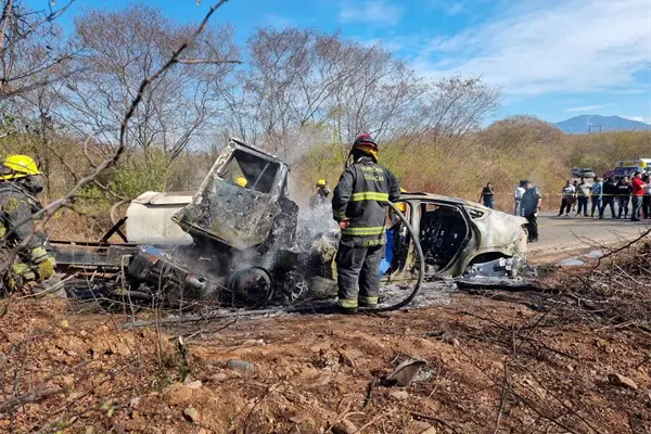 Tres personas que viajaban en un automóvil BMW y el conductor de una pipa murieron calcinados tras un aparatoso choque de frente en la carretera Sanalona-Tamazula, en la sindicatura de Sanalona, al oriente de la ciudad del municipio de Culiacán.