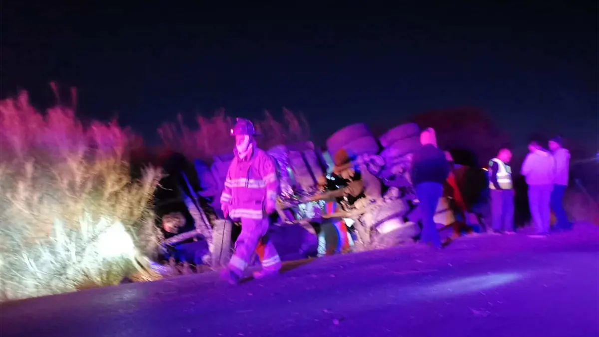 La pesada unidad quedó a un costado de la cinta asfáltica aproximadamente a las 21:30 horas, luego de que el operador, por razones desconocidas, perdiera el control del volante.