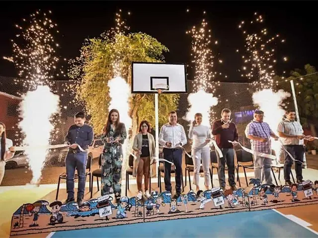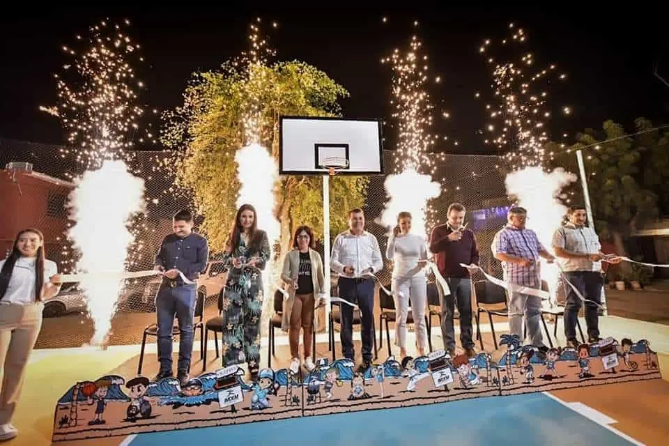 Alcalde de Mazatlán entrega nueva cancha de basquetbol en el fraccionamiento Francisco Alarcón