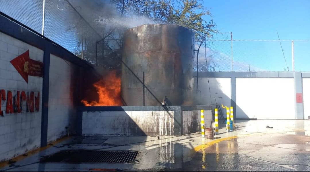 Los encargados de combatir el fuego que salían del tanque de 50 mil litros de capacidad fueron Bomberos, quienes rociaron una espuma especial hasta controlar las llamas.