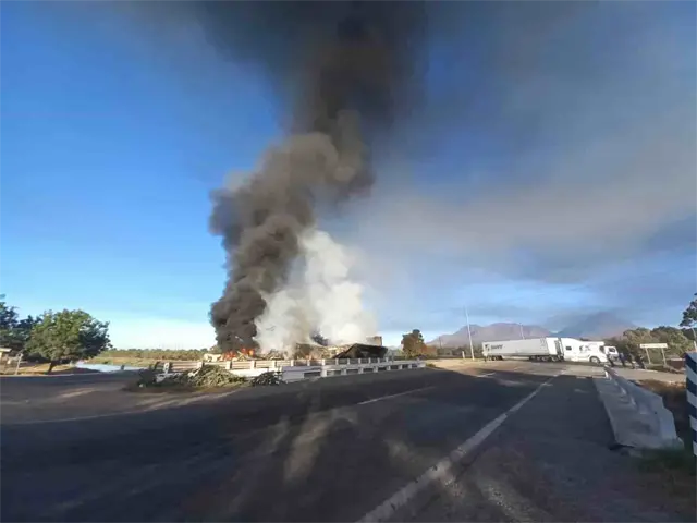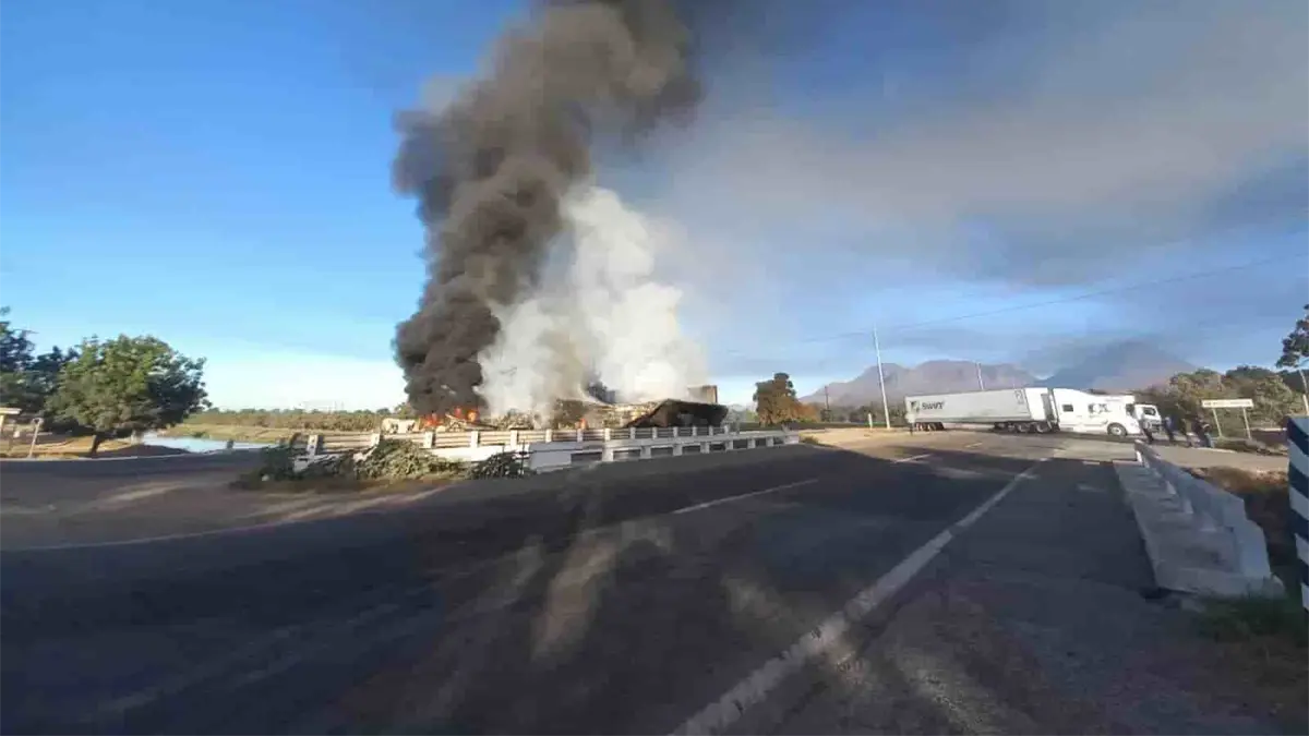 Con tráileres quemados, bloquean carretera México 15, en el norte de Sinaloa
