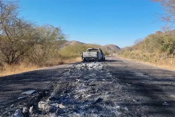 En el lugar había tres camionetas completamente baleadas y una Toyota Tacoma calcinada, en donde también estaba el cuerpo en el asiento del copiloto.
