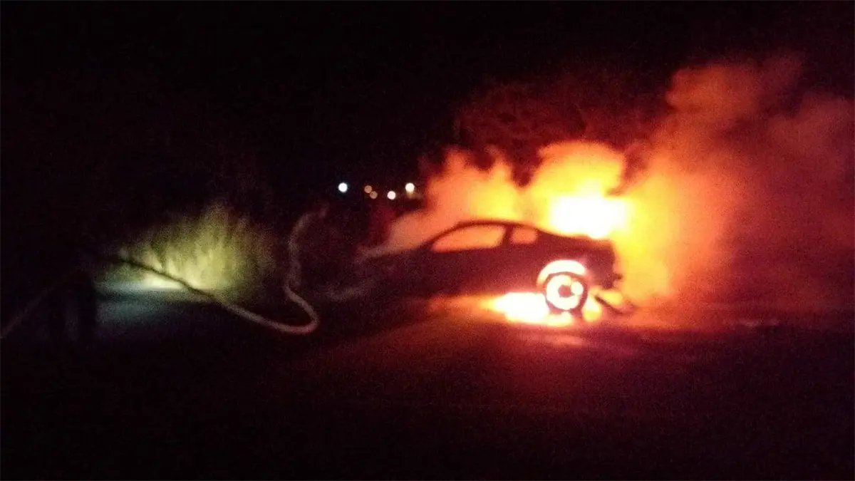 La unidad siniestrada es un Nissan Altima modelo 2008, que terminó totalmente consumida por las llamas. Trascendió que los propietarios acababan de comprar el vehículo minutos antes, en las inmediaciones del ejido Olas Altas y se dirigían hacia El Bule.