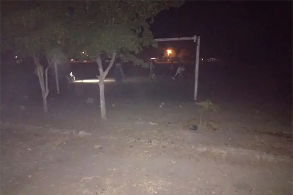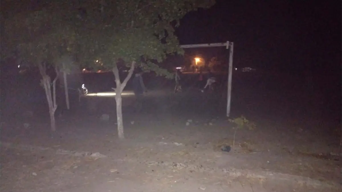 Utilizan luces de autos para jugar futbol y redes de pesca en la portería