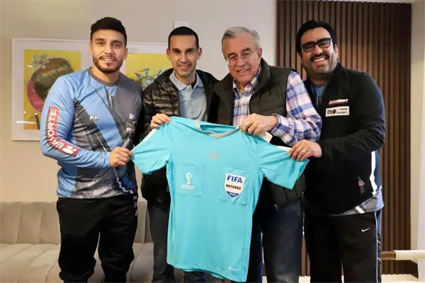 En este marco, César Arturo Ramos obsequió al gobernador una de las playeras que utilizó en el Mundial, además de un par de tarjetas con las que trabajó en los partidos.
