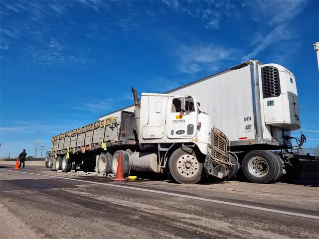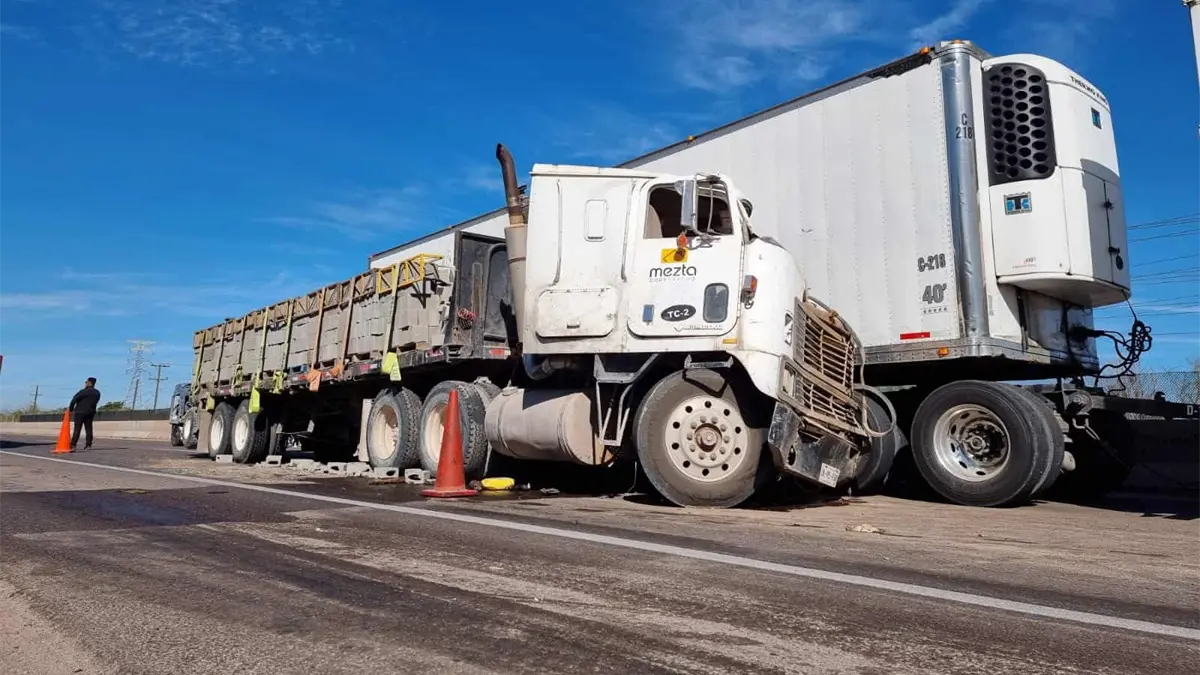 Con el impacto, el segundo tractocamión giró y chocó a la camioneta, misma que resultó con daños hacia un costado, aunque la mayor parte se la llevó el presunto responsable.
