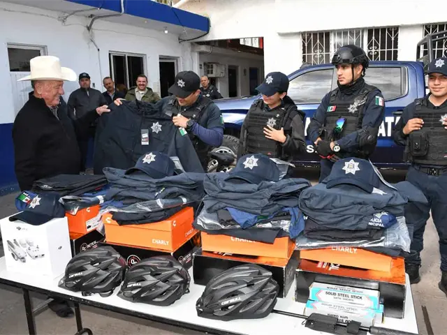 Indicó que los uniformes constan de un short, camisa tipo polo, pantalón táctico, chamarra, cachucha, cascos de protección y bastones; a su vez, se entregó un dron para el tema de vigilancia y supervisión área.