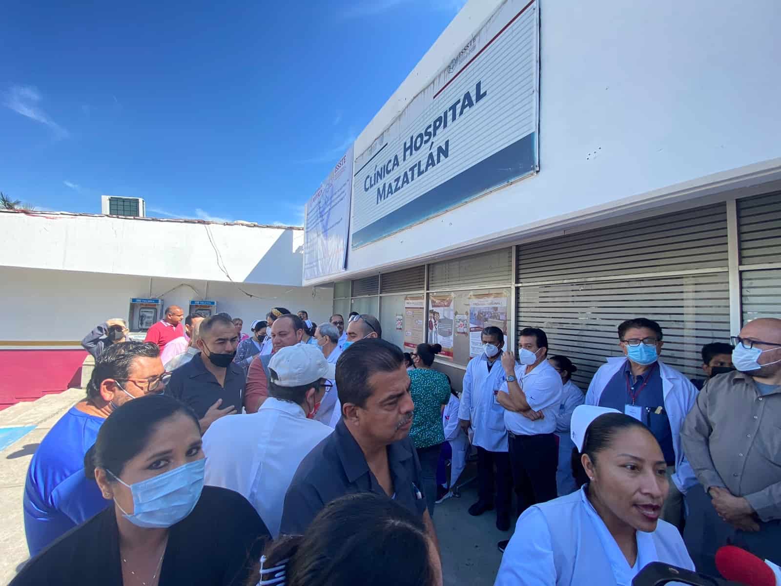 Ante la falta de medicamentos y otros insumos, trabajadores de la clínica del Instituto de Seguridad y Servicios Sociales de los Trabajadores del Estado (ISSSTE) se manifestaron en Mazatlán durante el mediodía.