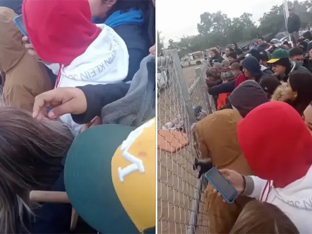 Decenas de aficionados vivieron momentos de estrés cuando empezaron los empujones, ya que intentaban impedir que se metieran a la fila.