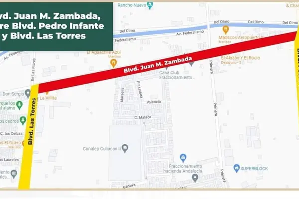 Este miércoles 1 de febrero a partir de las 9:00 de la mañana, permanecerá cerrado el bulevar Juan M. Zambada, en el tramo comprendido entre bulevar Pedro Infante y bulevar Las Torres en Culiacán.