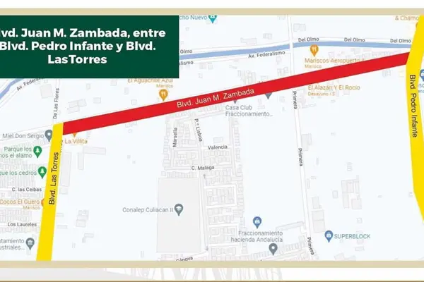 De nueva cuenta, este lunes 6 de febrero a partir de las 09:00 de la mañana permanecerá cerrado el bulevar Juan M. Zambada en la ciudad de Culiacán.